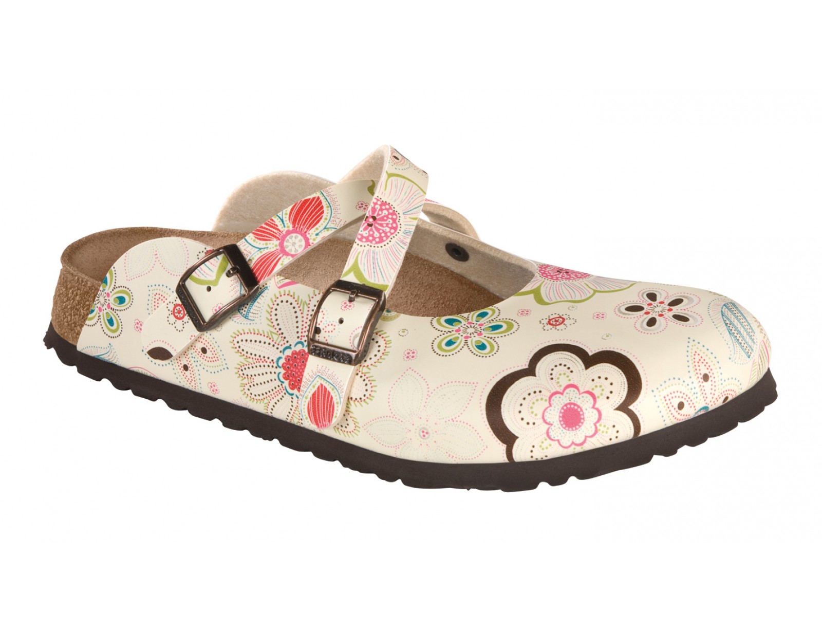 Birki’s clog with cross over straps in gracile blossom green birko-flor. This style has adjustable straps and shock absorbing EVA sole. The Birki’s footbed is made from cork and latex and is covered in a fine suede liner. Features include pronounced arch support and deep heel cup for maximum support.