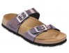 Two strap Papillio sandal in madreperla violet leather. This model has adjustable straps with diamante buckles, shock absorbing EVA sole and original Birkenstock footbed. The Birkenstock footbed is made from cork & latex and is covered in a fine suede liner. Features include pronounced arch support and a deep heelcup for maximum support.